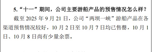 湖北日(Reporter Wang Yanhua)在国庆假期附近,湖北部各地的文化和旅游市场也变得炙手可热。 9月22日,Sanxia Tourism在9月21日进行投资活动的记录中说,“两bas和一峡谷”邮轮产品是在各种频道上预售的,两者均在10月2日至10月7日售出,并且在10月1日和10月8日剩下的剩下门票。HubeiSanxia Tourism Group of Hubei Sanxia Tourism co.的投资者。依靠这个世界的旅游资源,三场峡谷旅游业已经发展并推出了“两个大坝多层需求。多亏了不断增加的游客和产品价格的合理调整,一般收入和Ksanxia的旅游旅游业在一年中的上半年取得了显着增长,并获得了28600万YUAN的全面旅游业收入,该公司的综合产品均增长了20.20.20.20.20.20.20.20.20.20.20.20.20.20.20.20.20.20.20.20;S总共获得了12.525亿游客,在2024年同时增长了10.96%,接收人数继续达到新的高位。 According to a semi-annual report of three tourism gorges, in the first half of the year, the company had a total of 32 cruise ships, including 6 luxurious cruise ships on the Yangtze River Three Gorges series, 12 Xiling Gorges Series (2 new energy cruise ships), 3 three Gorges Gallery Series Cruise Ships, 4 Gauxia Pinghu Series Cruise Cruise Ships, Ships, 2 three Gorges Renjia Special Line船只,樟宜和1号长河3号,1辆定制游艇和2艘正在建造的省豪华游轮。三个旅游峡谷构成了省际品牌。今年8月,萨克西亚的旅游业发行了省内游轮“扬兹河旅行 - 链接月球”,预计将在2026年上半年进行。第二批两艘船将使用带有新能量的混合系统(甲醇) +(甲醇) +电池电池。在适应绿色发展的同时,它将为游客带来更舒适和环保的旅游体验。四艘省巡游船将经营Yiyu(Yichang to Chongqing)扬特兹河中最经典和受欢迎的峡谷。