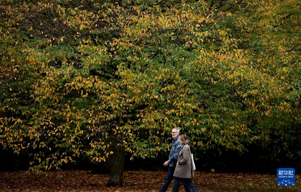 10月27日,人们在英国伦敦摄政公园散步。英国伦敦最近秋天的天气越来越严重。新华社记者 李英 摄