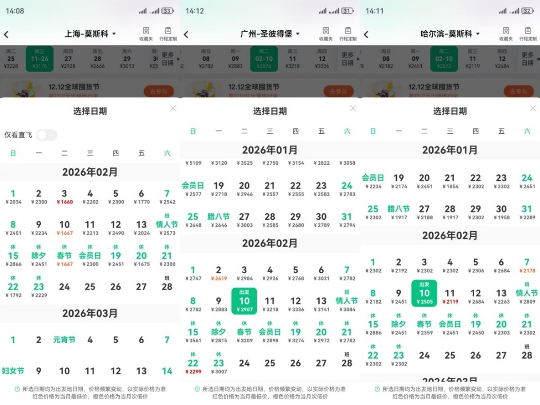 湖北日报讯(记者王丽略、通讯员吴秀娟)12月1日,根据俄罗斯总统普京当天签署的命令,自即日起至2026年9月14日(含),中国公民可免签前往俄罗斯旅游、商务等30天。这将大大有利于今年冬季中国游客赴俄旅游,也为赴俄商务出行提供便利。该旅游平台以优惠的价格提供俄罗斯产品。同程旅游平台数据显示,11月以来,中国飞往俄罗斯的机票搜索量持续上升,以俄罗斯为主要目的地的酒店预订量同比增长超过40%。 12月1日免签消息发布半小时后,与俄罗斯相关的搜索量增长了一倍以上,其中北京、上海、广州、成都、哈尔滨成为搜索量增幅最高的前五个城市。查相关人士同程研究院院长表示,免签政策实施正值出境冰雪旅游旺季。预计,随着元旦、春节等重要节点的到来,俄罗斯旅游热度有望再创往年同期新高。此外,在中俄互免签证的有利形势下,黑龙江等中俄边境口岸出入境旅游将迎来爆发期。通过免签政策,国内游客不仅可以在哈尔滨、漠河等地体验MGA冰雪旅游产品,还可以进入俄罗斯体验独特的风景,这将进一步增加黑龙江冰雪旅游的吸引力。据悉,俄罗斯冬季冰雪体验非常有趣,近年来已成为中国年轻游客的新宠。在这个作为一个大部分被北极圈穿越的国家,游客可以在摩尔曼斯克、彼得罗扎沃茨克、纳良马尔等多个城市观赏极光,还可以体验雪地摩托、北冰洋追鲸、邂逅驯鹿、荡到世界尽头等小众体验。展示旅游季节和雪季的首选产品。记者通过省内主要旅行社了解到,目前不少湖北游客将对赴俄罗斯旅游表现出浓厚的兴趣,省内各大旅行社都在积极发展跟团业务。此外,旅游平台还针对冰雪旅游季推出特别优惠。最高可领取600元东北红包、1500元欧洲红包。俄罗斯、挪威、芬兰和冰岛都是冰雪运动的热门目的地。 》9天7夜 圣彼得堡+莫斯科+俄罗斯+谢镇+冬宫+克里姆林宫蕾丝+夏宫花园跟团游”“9天7夜摩尔曼斯克+莫斯科+圣彼得+萨米村+追光之旅+摩尔曼跟团游”“8天6夜·春节热销免签俄罗斯莫斯科+曼斯克双城4航班8天3次追击体验”都是热门航线,热门出游日期首先集中在明年1、2月份。相比其他北欧国家的极光航线,成本在俄罗斯效果尤为突出,成本可降低一半甚至更多。
