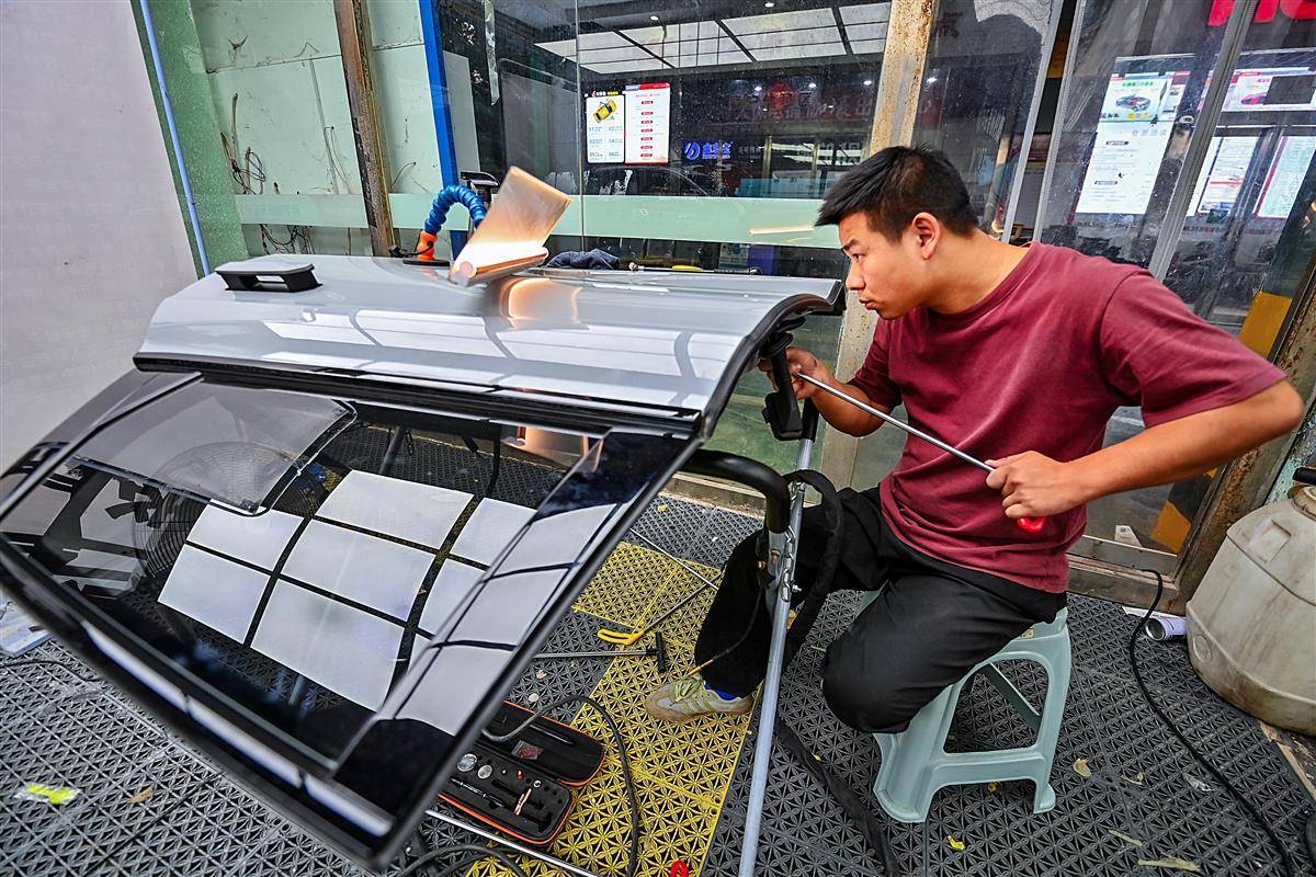 10月10日,叶师傅在武汉仁和路一家配车店安排汽车凹痕。安排汽车凹痕是一种 10月10日,叶师傅在武汉仁和路一家配车店安排汽车凹痕。汽车凹痕修复是一种基于光学、物理和机械原理的隐蔽性修复技术。它利用杠杆原理,在不破坏原车漆的情况下,修复车身凹痕。它主要适用于不掉漆的锐角、迷人凹痕和冰雹坑。叶师傅表示,相比传统的钣金修复需要抛光油漆、经过多道喷涂工序,牙科修复技术省去了喷涂的工序。目前,全国已有60多家汽车修理店在进行汽车维修。 (湖北日报全媒体记者 朱西勇 摄) 喜欢 (0) or 分享 (0)